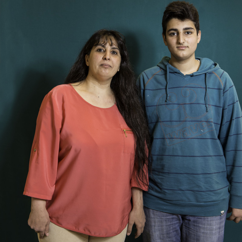 Chaza Zuur (50) en haar zoon Haidar Hachmi (14) uit Homs, Syrië
