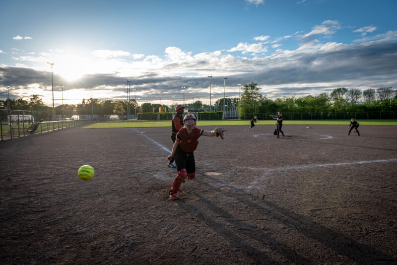 Het damesteam honkbalclub BSC Caribe in training.