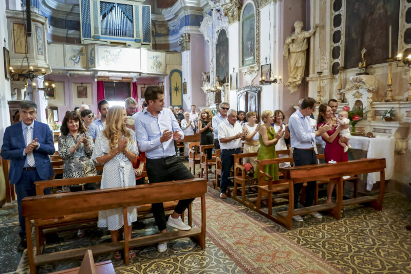 Een doopplechtigheid in het bergdorpje Corte, in de Ligurische Alpen ten noorden van San Remo in Italië. Corte heeft maar weinig permanente inwoners, maar veel Italianen hebben er een tweede huis. Een doopfeest is een hoogtepunt in het sociale leven, waar iedereen zich van zijn beste kant laat zien.