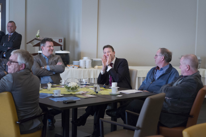 Fractievoorzitter Halbe Zijlstra (VVD) praat met ondernemers in Hotel Aduard.