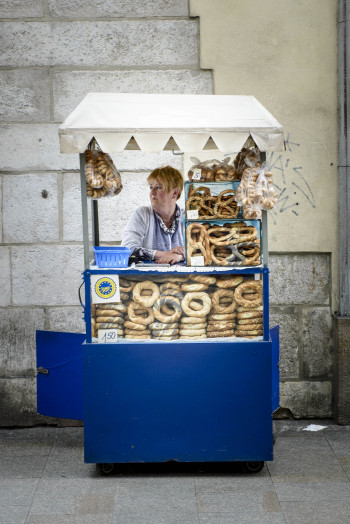 Pretzelverkoopster.